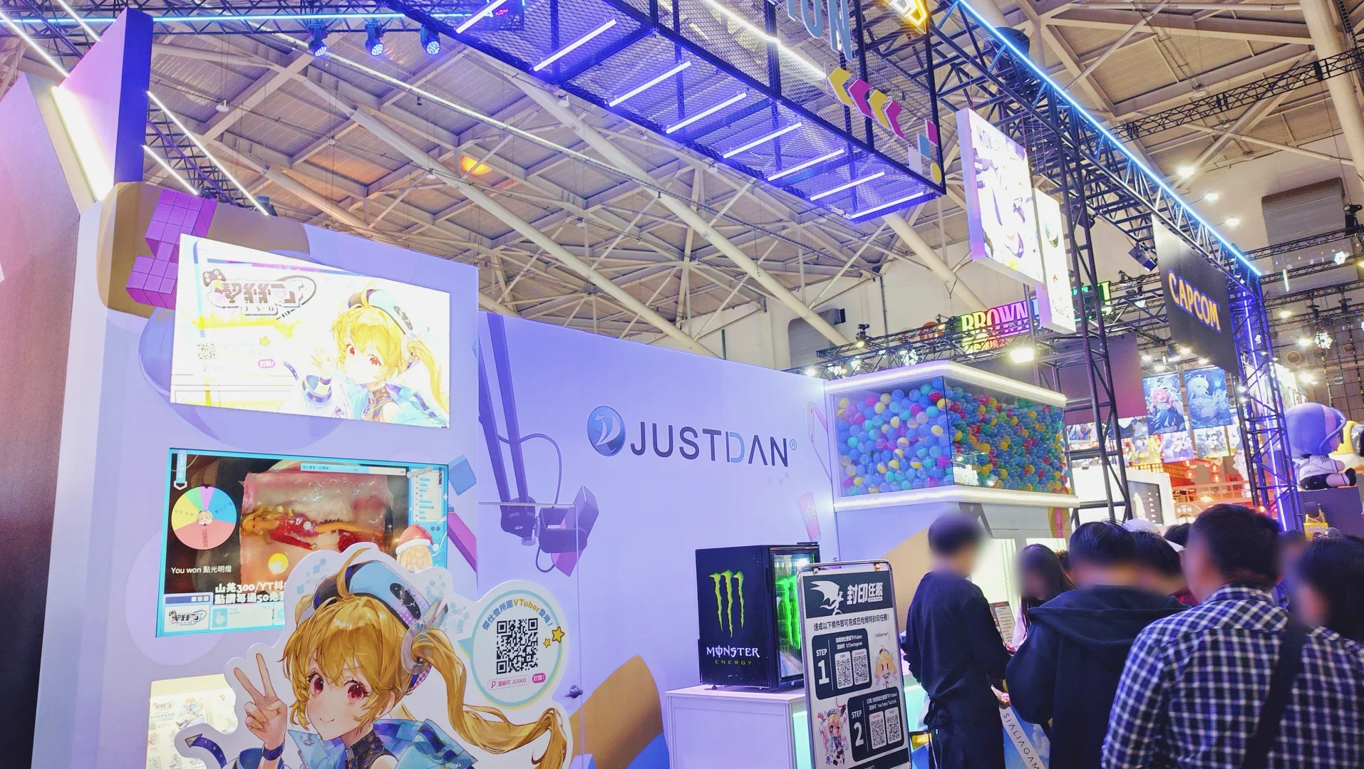 看到色情美少女手遊的攤位還佈置得超粉嫩!防詐騙的攤位也設計的非常好看。