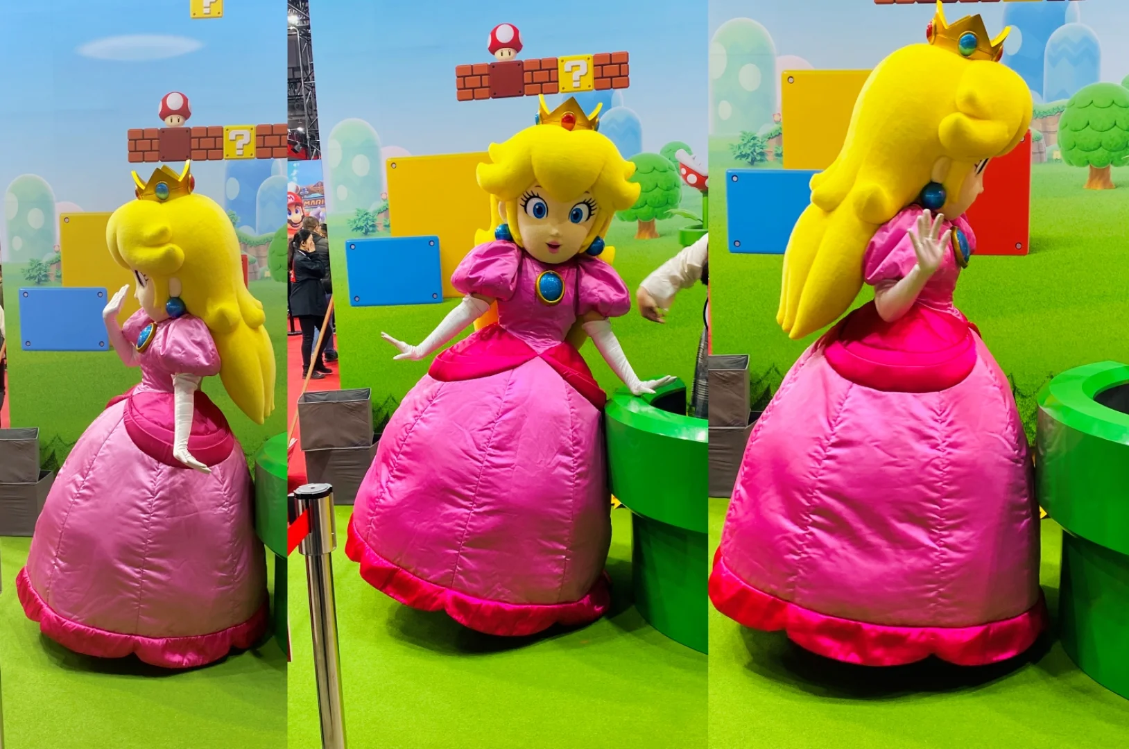 剛好排在前面的同好明顯超愛耀西,看她抓著拉著耀西非常開心興奮的樣子,完全沒有甩公主,公主發現自己被冷落還很傷心跑到角落哭哭🤣😂!我超級可以理解這位耀西同好的心情,碧姬公主的反應真的是太可愛了☺️給她秀秀~!